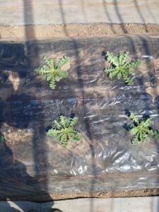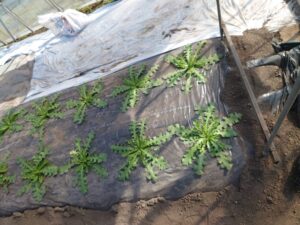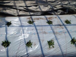 黒色マルチほど、地温がかからないので少し生育差をつける事ができます。(採花までの作業分散にもなる)